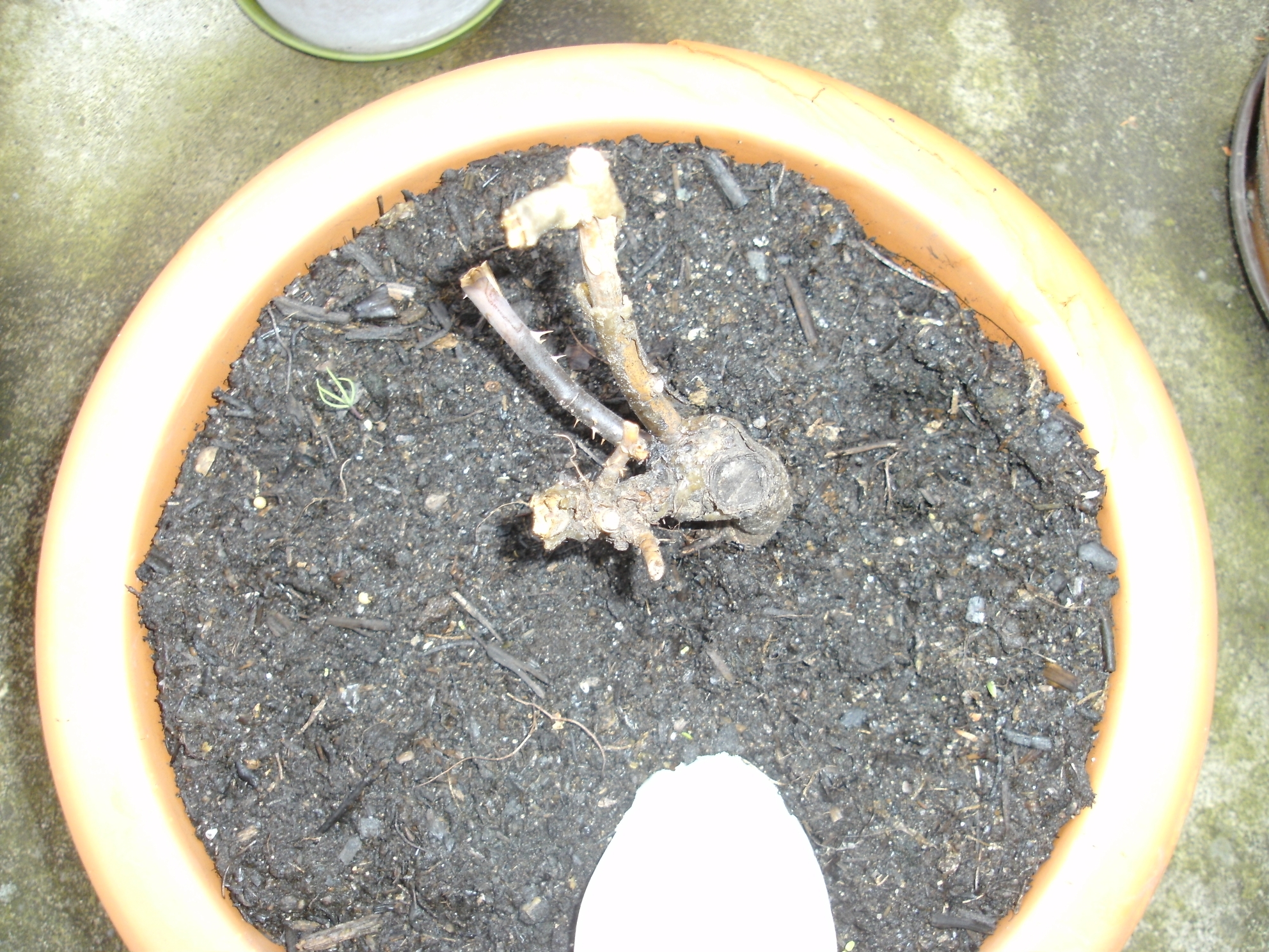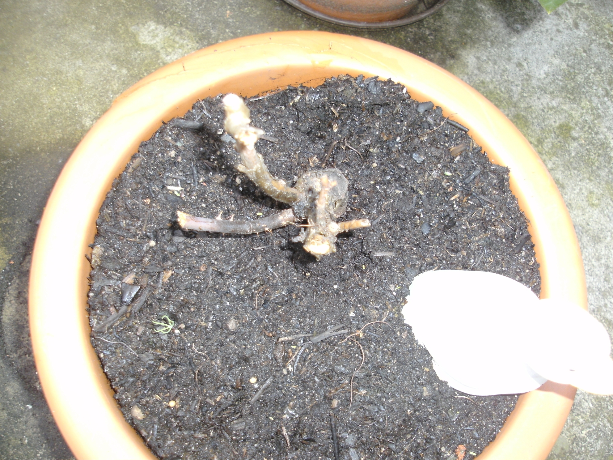 - ich habe gestern einen schönen Erdhügel um die Veredlung gebaut- links schaut sie noch etwas raus, rechts ist alles unter der Erde, da sind m.M auch schon 1-2 Knospen