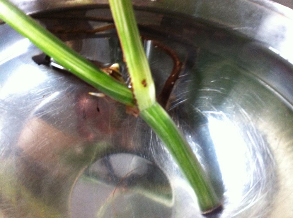 ich habe über Ebay einen Monstera Deliciosa Variegata Ableger bekommen. Nur ein Blatt mit zwei Luftwurzeln und sogar schon Wurzeln daran. Allerdings sind die Wurzeln auch über dem Blattaustrieb (auf dem ersten Bild geht der nach links ab) vom ursprünglichen Stamm. Also wenn ich den Ableger so einpflanze, wie er mal gewachsen ist, also senkrecht, dann schauen die Wurzeln oberhalb aus der Erde raus. Ich müsste theoretisch den ganzen "alten" Stamm mit unter die Erde machen, waagrecht, aber darf man das? Verfault das nicht? Und außerdem sieht es aus, als käme am "alten" Stamm, dierekt über dem Blatt, ein neuer Austrieb. Ich weiß aber nicht, ob es ein Blatt ist, oder Wurzeln, aber ich denke eher ein Blatt. Und das kann ich ja nicht einbuddeln, oder?