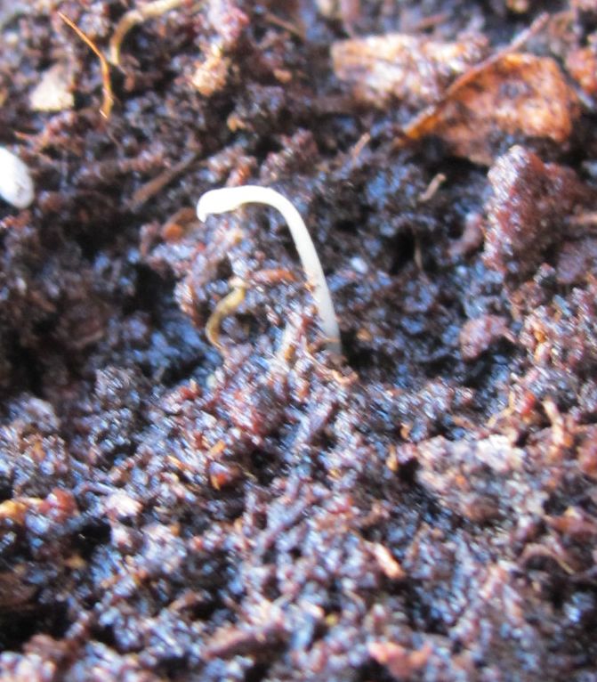 Ich dachte schon es tut sich nichts mehr und hätte sie fast entsorgt... Heute gucke ich in das Gewächshaus und denke ich träume! Sie steht nun im Schlafzimmer (auch Ostfenster) in einer Mischung aus Blumenerde und Kokohum, da sie im Anzuchtgefäss mit der Wurzel schon unten angestossen ist (vor 3 Tagen war da noch nichts!). Ich bin gespannt wie es weiter geht! Wenn sie etwas grösser ist darf sie dann langsam ans Südfenster umziehen...