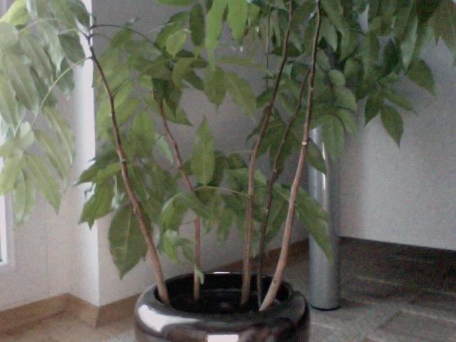 Die Pflanze ist ungefähr einen halben Meter groß, besteht aber seit kurzem hauptsächlich aus langen Hauptästen, da die meisten kleinen Seitenäste abgefallen sind. Die wenigen Seitenästchen, die sich am unteren Ende des Hauptstammes befinden, haben aber gesunde, wenn auch etwas ledrig wirkende Blätter.