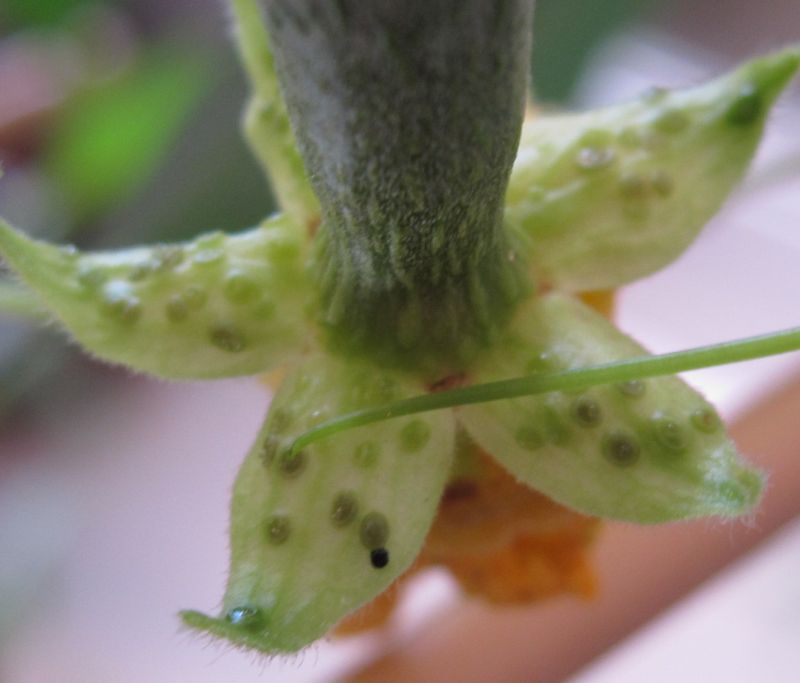 Ich wäre mal wieder froh um eure Hilfe! Meine Luffa (Schwammgurke - die aus der man die Badeschwämme herstellen kann) hat seltsame Schäden an den Blättern und Überresten der Blüte, und was mich auch misstrauisch macht, ist, dass eine Wespe sehr emsig um die neuen Knospen rumkrabbelt.