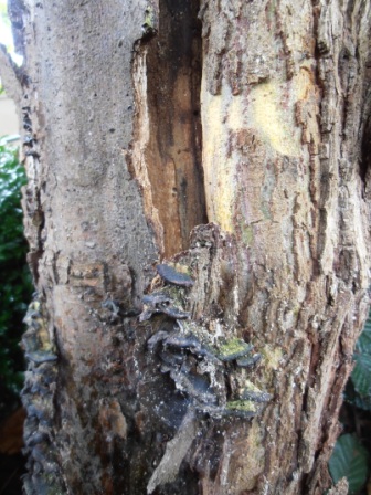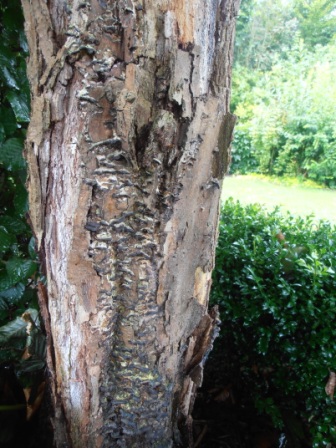 Ich habe mal einige Fotos angefügt, die das Dilemma dokumentieren - wie man erkennt, ist der Baum von unten her erkrankt.
