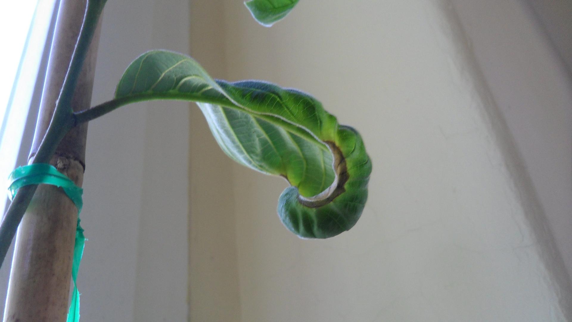 1. Das erste Problem ist dass sich bei meiner Cherimoya am obern Teil der Pflanze die neuen Blätter verformen obwohl ich alles wie immer mache, also ich halte die Erde normal feucht und ich dünge alle 2 Wochen. Sie steht an einem ost Fenster und hat vormittags Sonne. (siehe Bild 1,2 )