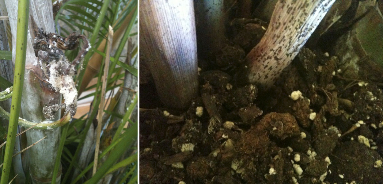 kurze, aber für uns wichtige Frage an die Fachgemeinde: unsere heiß-geliebte Palme (eine Zimmerpalme, genaue Spezies leider unbekannt) weist seit Kurzem einen heftigen Schädlings-/Krankheitsbefall auf (siehe Bilder anbei)... Wer weiss bzw. kann uns raten, was zu tun ist?