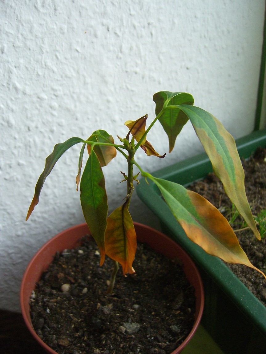Nachdem meine Litschi schon länger gekeimt war fing sie irgendwann an zu hängen. Da topfte ich sie in ein größeres Gefäß mit frischer Erde und spülte auch das Wurzelwerk vorsichtig ab. Leider vergingen nun einige Wochen und sie sieht einfach immer schlechter aus. Die Blätter werden von den Spitzen nach innen braun und auch der Stamm bekommt eine bräunliche Färbung.