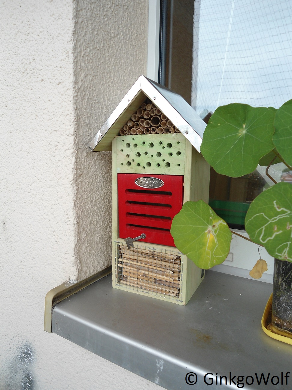 Die markhaltigen Stängel im 3. Fach sind beliebt, weil leicht herzustellen, aber leider werden die so kaum angenommen. Die Bienen, die in markhaltigen Stängeln selbst Gänge graben und dann dort ihre Eier ablegen, sind darauf "getrimmt", nach verdorrten Trieben Ausschau zu halten, Brombeeren, Königskerzen und so was. Die wachsen aber nicht gebündelt und nur sehr selten wirklich waagrecht. Deshalb werden solche Nisthilfen kaum mal angenommen. Außerdem sind die Abschnitte viel zu kurz.