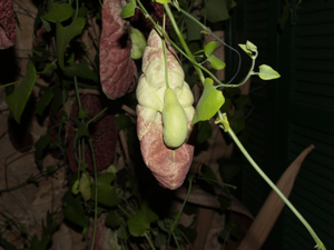 Es ist eine Aristolochia gigantea - und zwar eine Knospe - wenn die Blüten offen sind, ist das wunderschön!