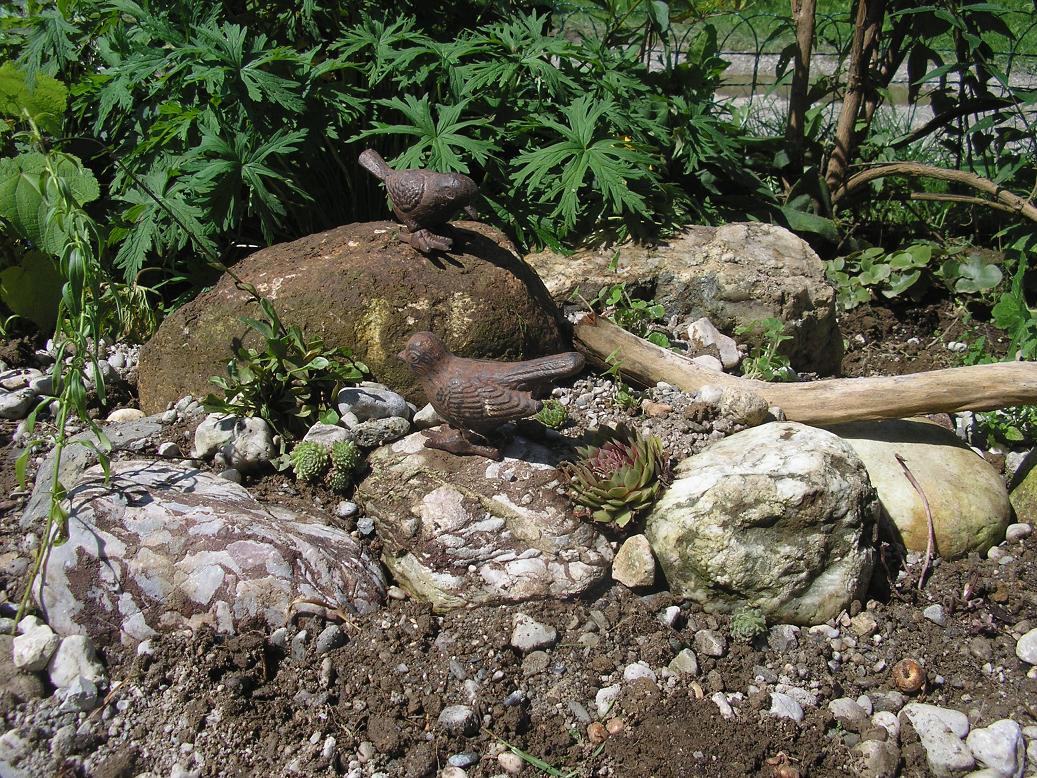 Zu guter letzt dann noch alles eingießen und damit es nicht so langeilig aussieht bis die Pflanzen größer sind hab ich noch zwei Vögelchen auf die Steine gesetzt.