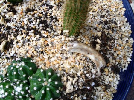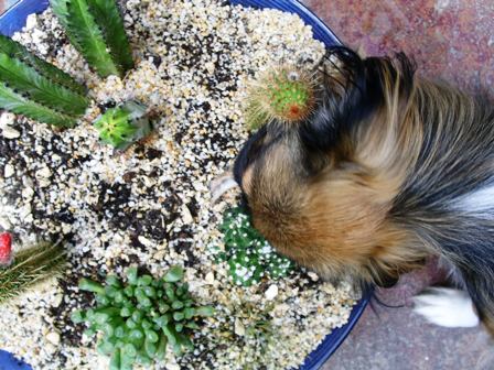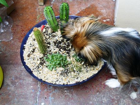 Vorhin sah ich Chiva an der Kakteenschale und fragte mich, was sie da macht.
