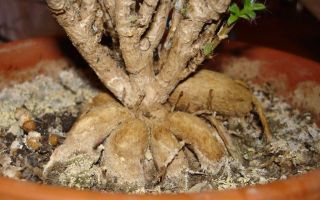 Er wächst sehr filigran und ich habe ihn schon des öfteren zurückgeschnitten. Er ist jetzt ca. 20 cm hoch und mist im Durchmesser ca. 10 cm. Seine Wurzlen bilden sich sterk aus.