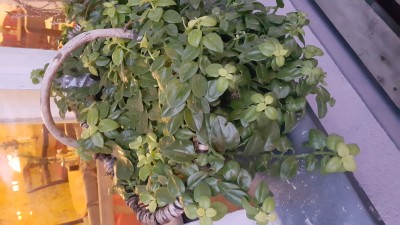 Ich kann eine Bergenia cordifolia anbieten. Sie ist winterhart, färbt ihre Blätter jetzt im Herbst rötlich und blüht ab April mit einer rosa Blüte.