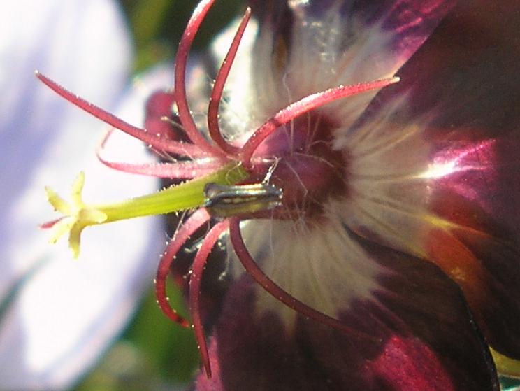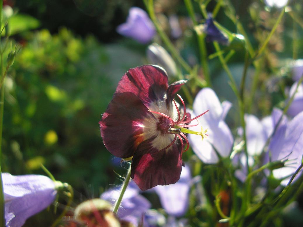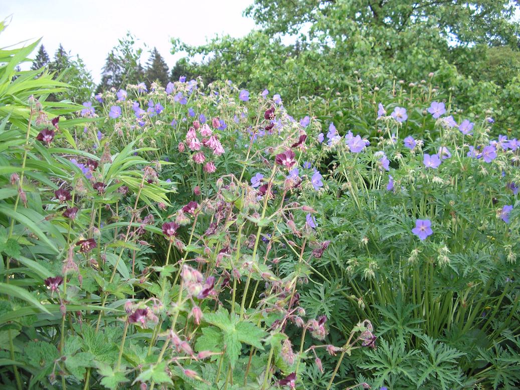 Der Braune Storchschnabel trägt zwar keine besonders großen Blüten, macht aber dafür mit deren sehr dunklen Färbung auf sich aufmerksam. Von Schwarzviolett, Purpurn bis Braunrot kann sie variieren, auch weiße und rosafarbene Varianten findet man manchmal.