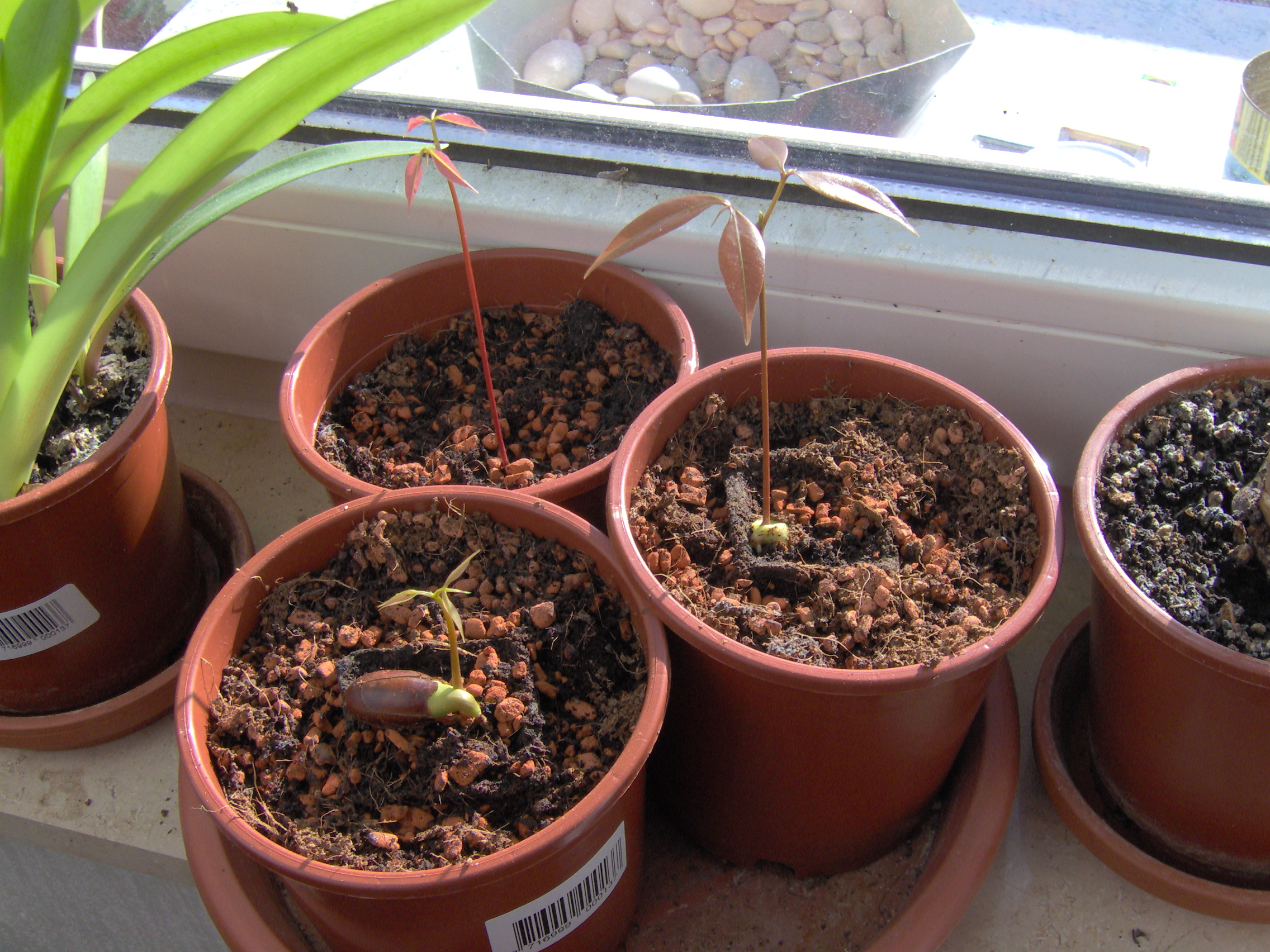 Hier ist mein Litschiversuch, vor grob 4 Wochen gegessen und so sehen sie jetzt aus.