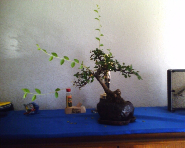 Habe meinen Bonsai jetzt seit ca. 4 Monaten und vor einem Monat hat er angefangen Triebe zu bilden, die jetzt aber unansehnlich lang geworden sind (siehe Bild)