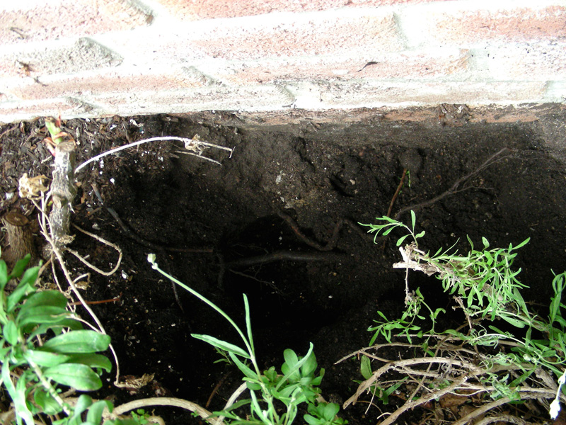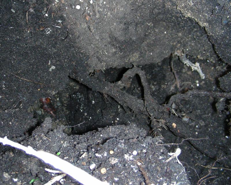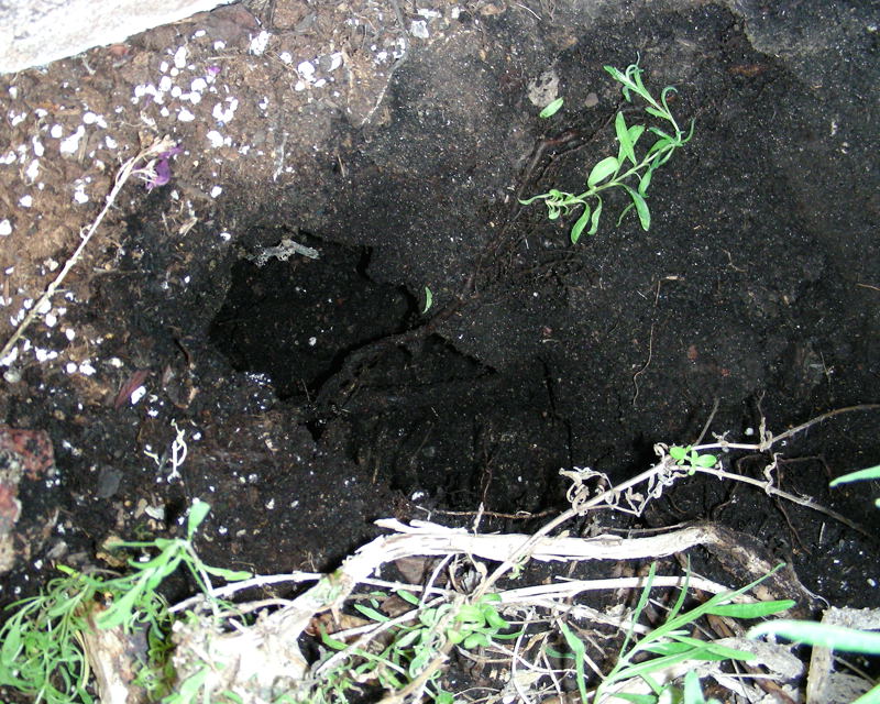 GG wollte heute statt der alten Rose zwei Clematis einpflanzen. Dabei stieß er auf ein Loch, das immer größer wurde. Für ein Mauseloch viel zu groß.