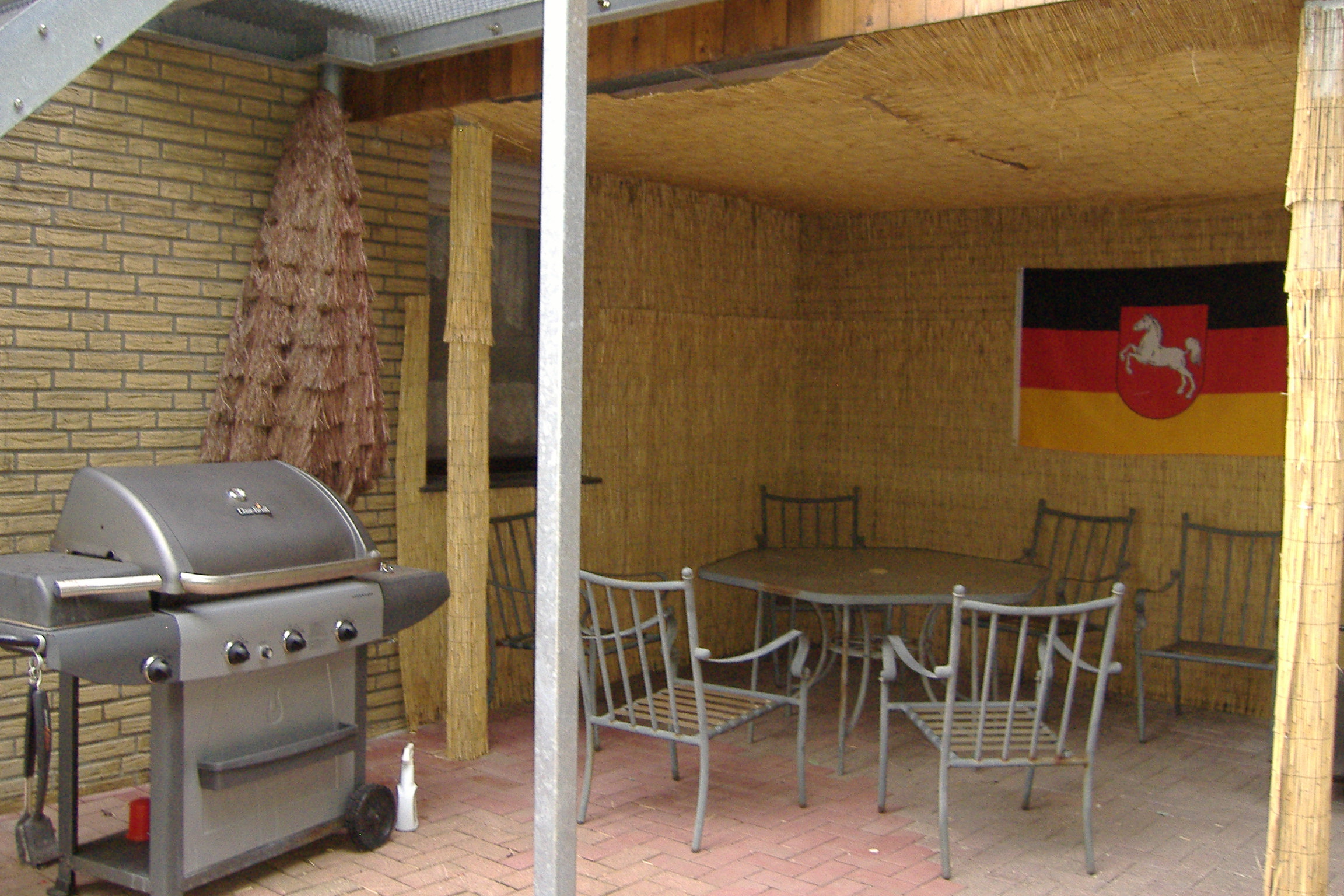 Mein Freund und ich haben am Wochenende jetzt mal endlich unsere künfige Grillecke entrümpelt. Die Wände haben wir schonmal mit Schilfrohrmatten verkleidet. Aber jetzt gehen wir irgendwie die Ideen aus. Unter die Decke wollten wir einen Leuchtschlauch legen, also zwischen Decke und Schilfrohrmatte. Aber ich finde da fehlt noch was buntes.