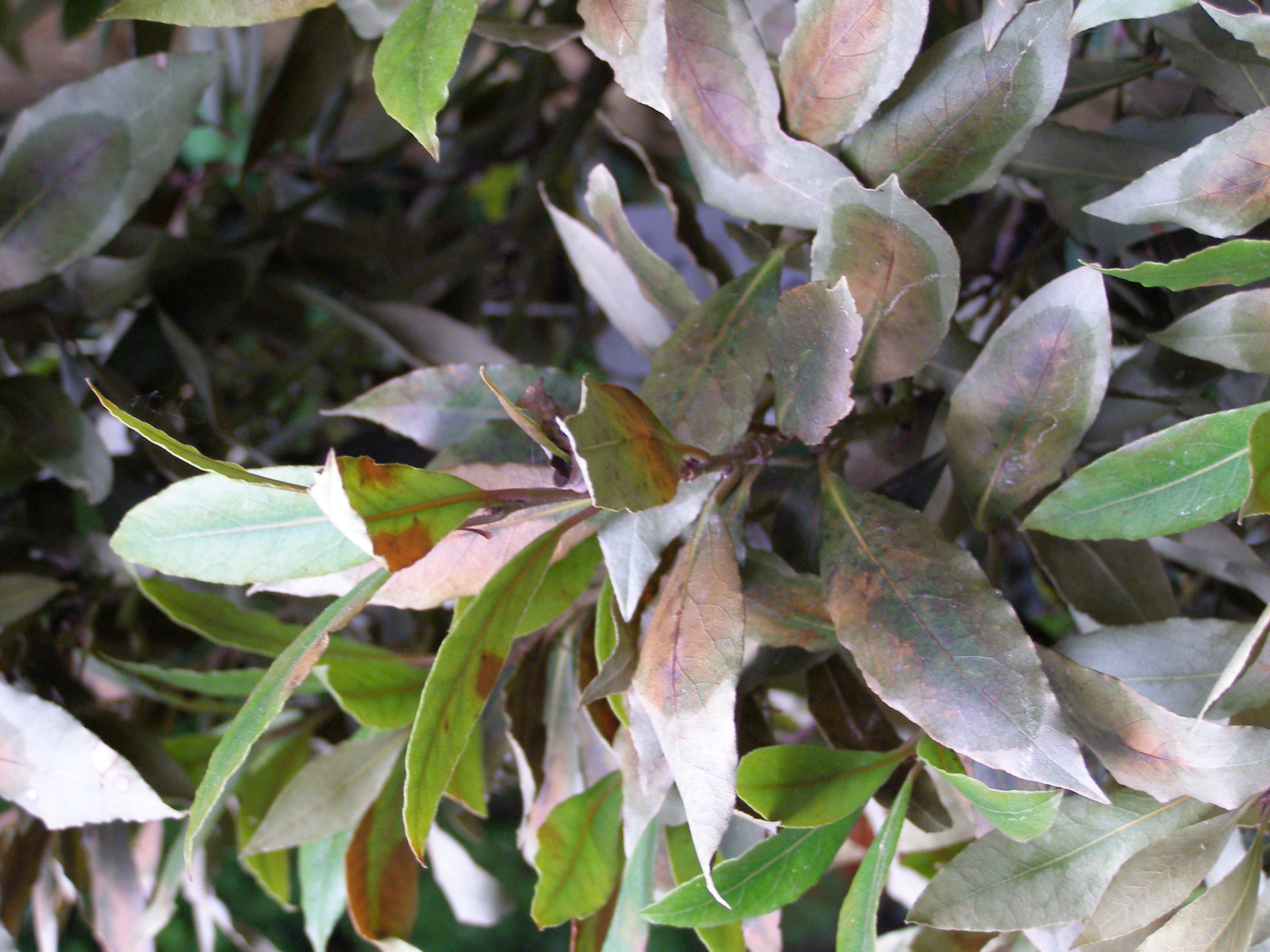 Einer der betroffenen Lorbeer hat nun im Bereich der Gabelungen eine "art Sägemehl", als würde sich da was durch den Stamm bohren...