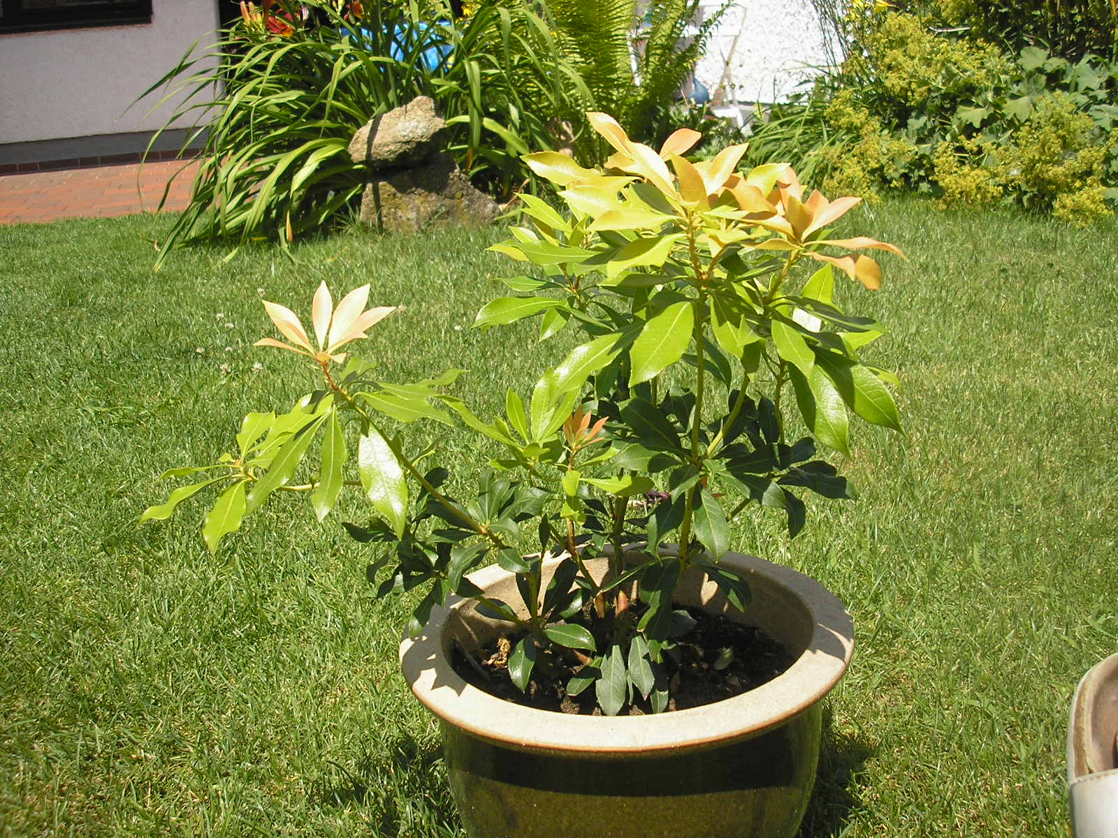 ich habe heuer im Mai in Schottland, vorwiegend im Raum Edinbourgh-Glasgow, in einer großen Vielfalt wunderschöne Ziersträucher mit grünem Laub und rosaroten Spitzen in Höhen bis zu 1m gesehen und zwecks Integrierung in meinen Garten auch einen diesbezüglichen Setzling (siehe beiliegendes Bild) in einem Gartenmarkt erworben. Nun stellen sich für mich aber folgende Fragen, für deren Beantwortung ich sehr dankbar wäre: