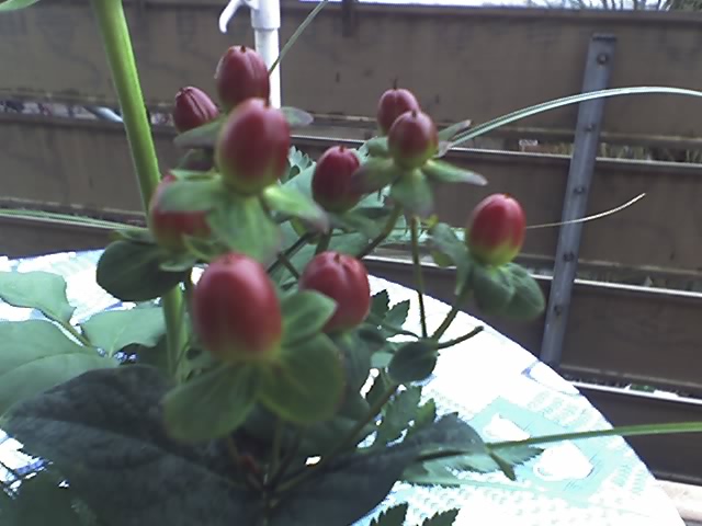 Ich habe draussen im Kübel ein schon etwas größeres Kalms Johanniskraut, daß ich im Spätjahr erstanden habe.