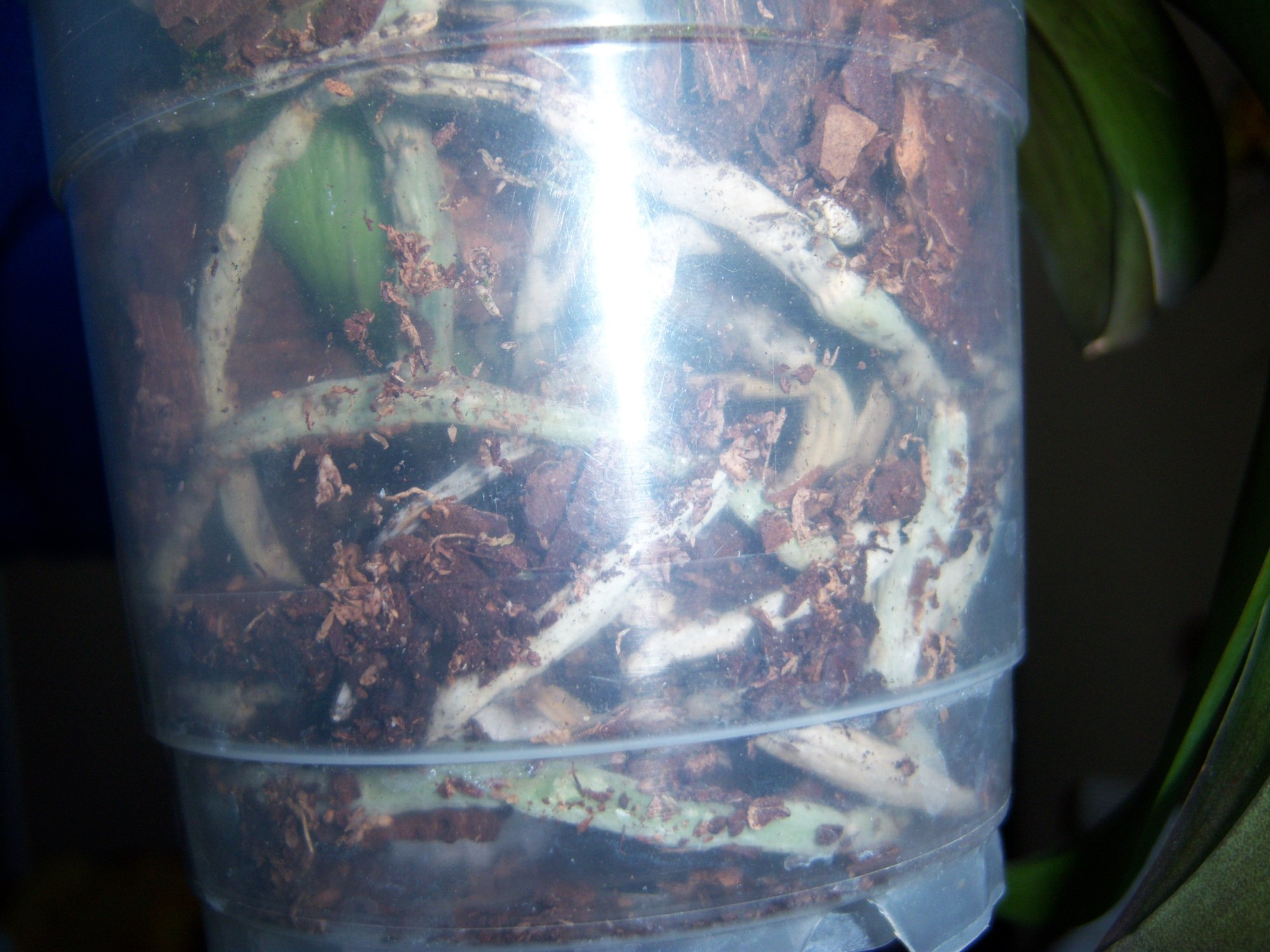 Du solltest ein detaillierteres Fot hochladen, ansonsten kann man einfach zu wenig erkennen. Stell den Topf am besten auf den Tisch zum knipsen und ein Foto der Wurzeln wäre wahrscheinlich auch nicht verkehrt.