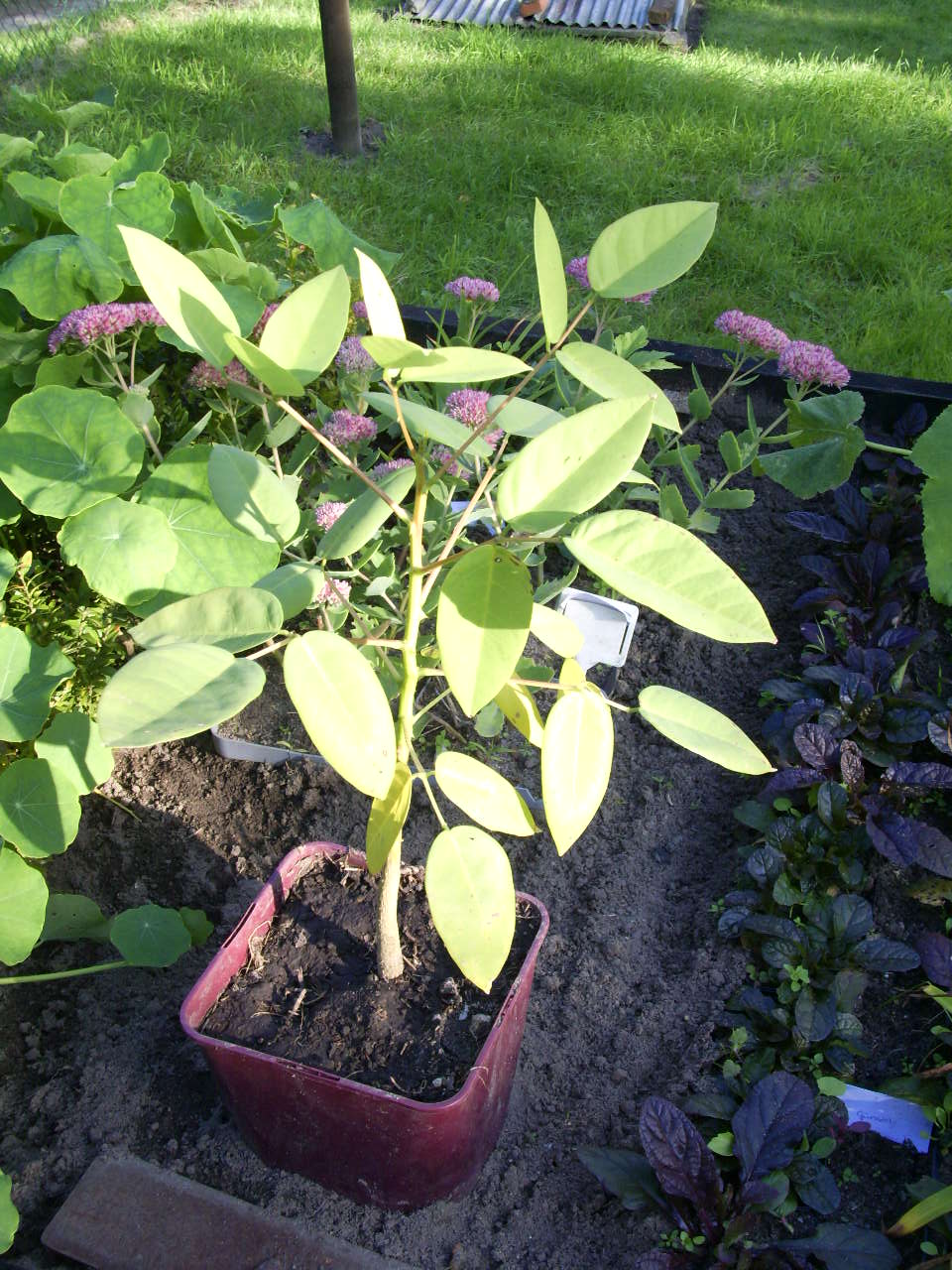 Weiterhin hege ich die Vermutung, dass der Baum vielleicht nicht einheimisch ist (ich lege mich hierbei auf nichts fest, da ich so 'ner Pflanze noch nicht begegnet bin in unserer manchmal sehr überraschenden Natur), aber sie wird wohl winterhart sein, denn sie hat wohl schon drei, vier Jahre in dem Garten, wo sie herstammt, zugebracht - bevor sie jemand ausgebuddelt hat.