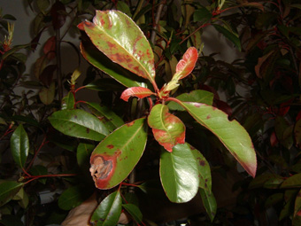 An den von Ihnen Mitte April eingesandten Pflanzenproben konnten die Nebenfruchtformen von Phyllostictina und Leptothiorella gefunden werden, die auf die Hauptfruchtform des Pilzes Guignardia deuten. Der Pilz Guignardia ist ein Blattbräune-Erreger.