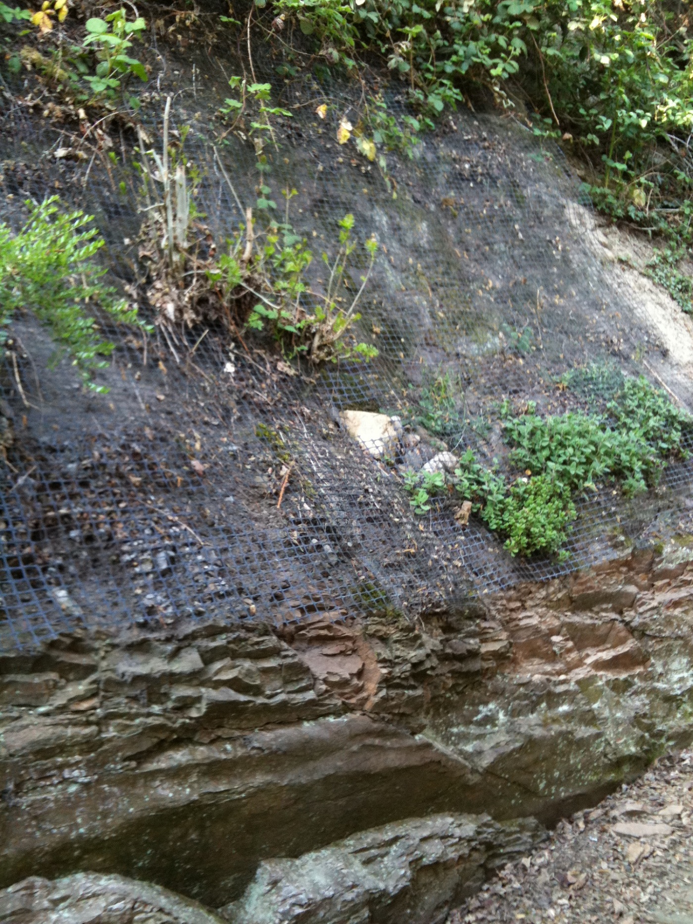 Wenn Du auf diese Art Erde an ein paar Stellen gebracht hast (und siehst, daß das Ganze so stabil ist, daß es nicht wegrutscht, oder bei Regen weggespült wird), kommen die Pflazen.