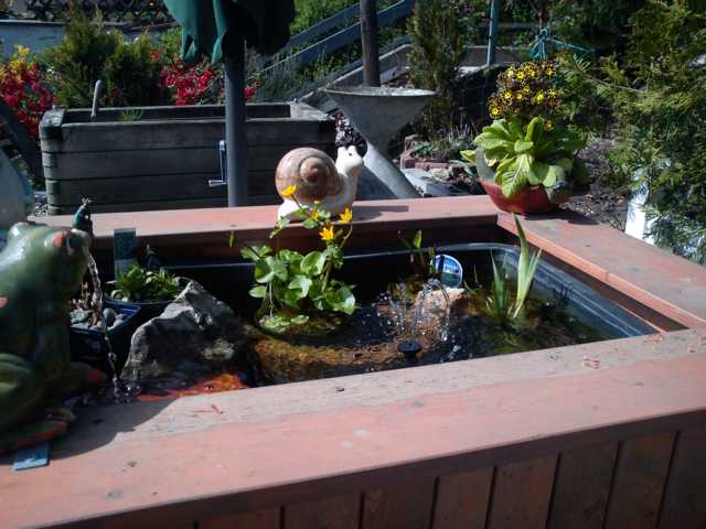 In dem Inneren Bereich haben wir eine GFK Teichwanne reingestellt die Wand außen wurde entsprechend angepasst .