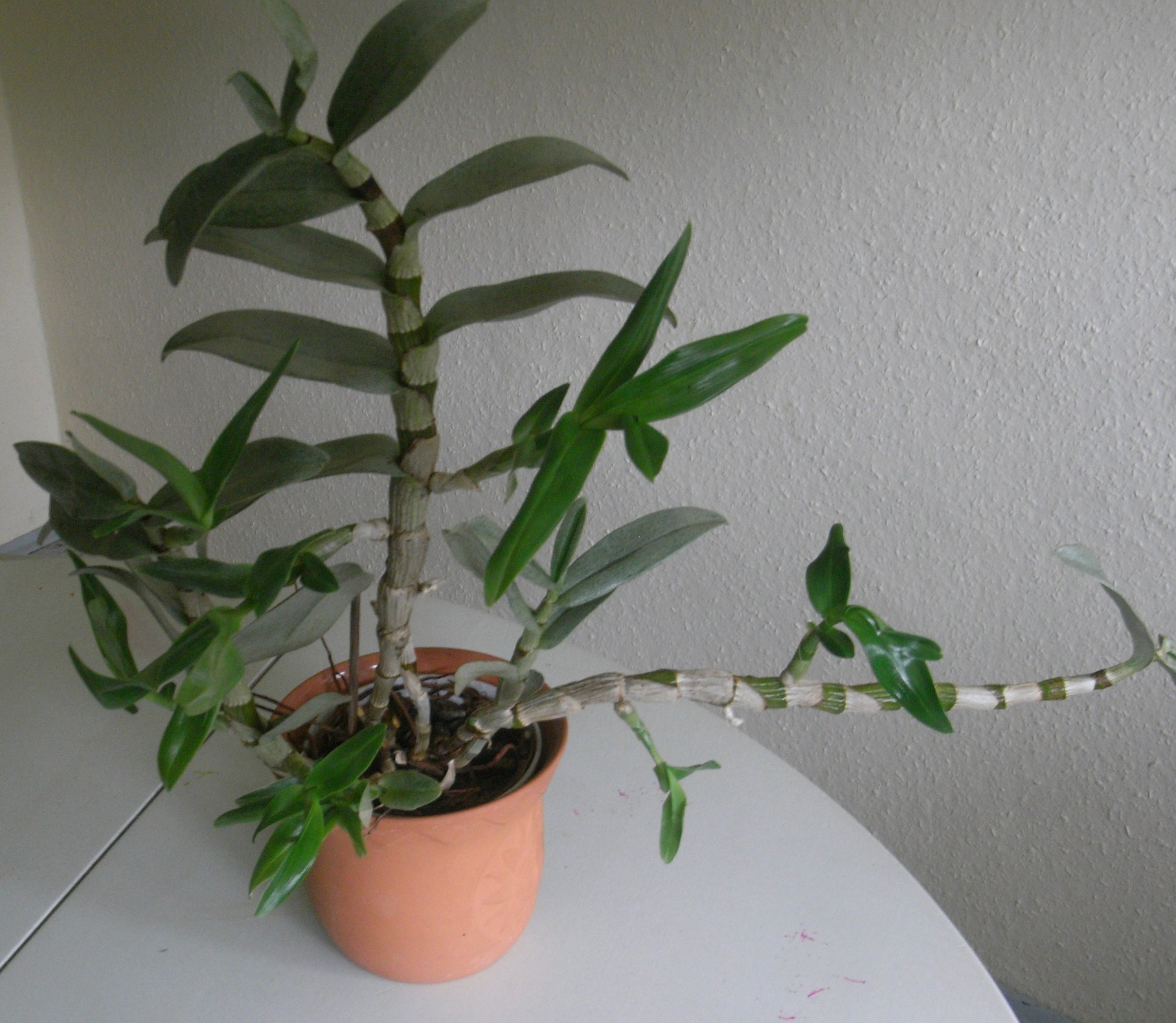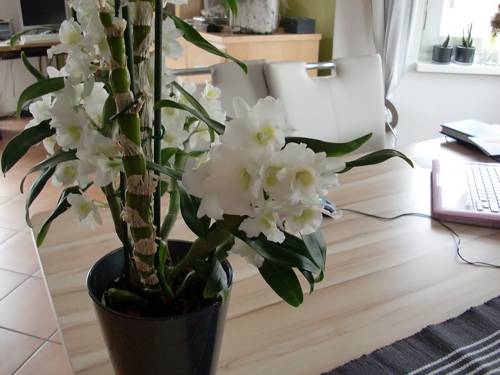 Ich habe hier eine Dendrobium nobilé die neben diversen neuen Trieben auch ein Kindel gebildet hat, welches inzwischen schon recht groß ist (ca. 16 cm + mehrere bis 5 cm lange Wurzeln).