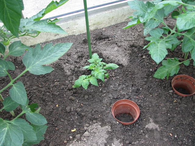 Man lässt immer nur einen oder zwei Haupttriebe wachsen. (Nur bei Strauchtomaten nicht) Dazu muß man die Triebe in den Blattachseln ausbrechen. Das nennt sich ausgeizen. So geht dann die Kraft in die Früchte und nicht ins Kraut.