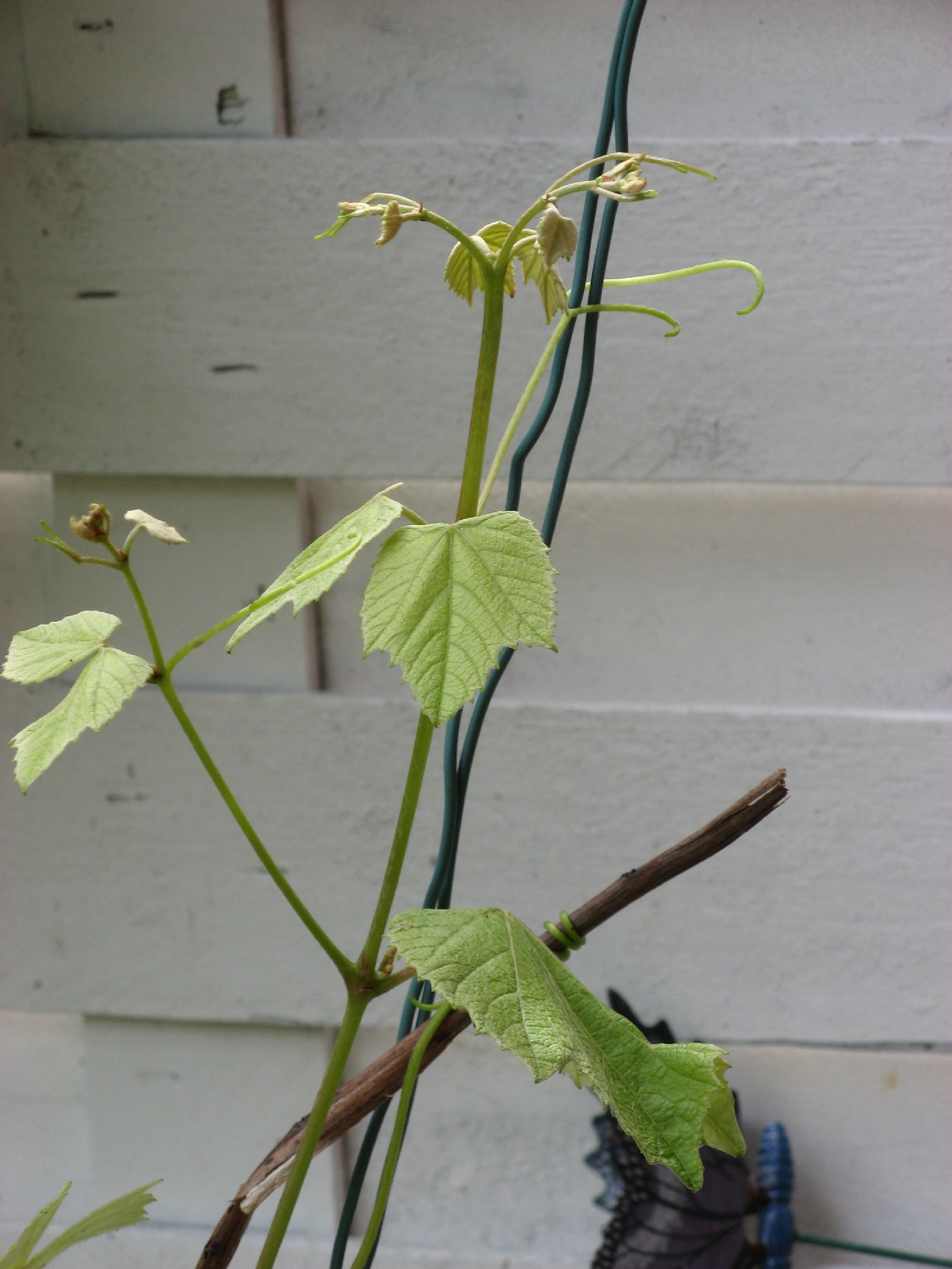 mein in diesem Jahr gepflanzter Wein macht sich nun auf in die Höhe - wie gewünscht.