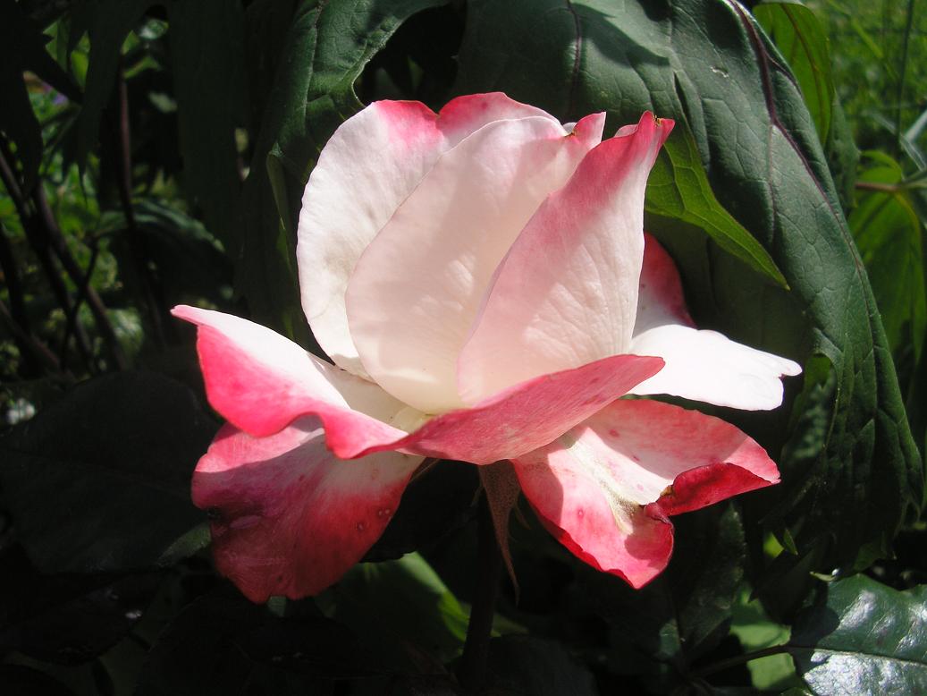 Nostalgie, eine weiße Rose mit rotem Rand hat sich als zickiger erwiesen aber dafür ist sie sehr gesund.