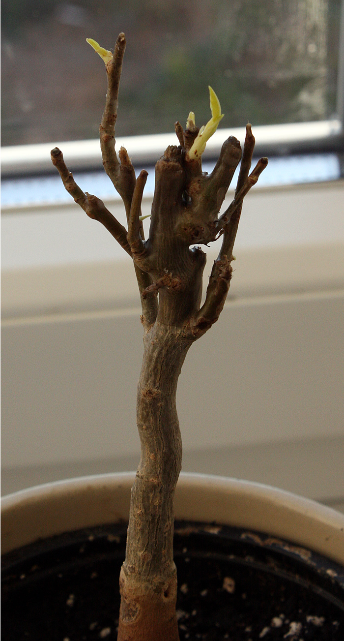 mein diesjährig gesähter (siehe oben) macht sich still und heimlich vom acker. irgendwas passt ihm nicht. die blätter werden gelb, dann trocken, hängen schlapp. er steht am ostfenster, aber schattiert hinter dem fensterkreuz und kriegt nur bißl sonne von links und rechts. vorher, als das alles angefangen hat, stand er ostfenster sonnig. ganz vorher, da ließ er auch schon die blätter hängen, stand er schattiert (wie oben zu sehen) unter dem avocado. gegossen wird er von unten. nicht sehr oft, also, ich laß den topf schon leicht werden. ist das der fehler?