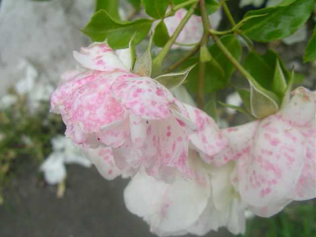 Nach dem großen Regen am Wochenende sehen die Rosenblüten von meiner Schneewittchen-Rose alle so aus.
