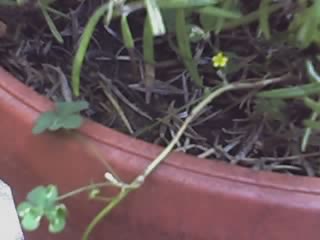 Auf dem Balkon wächst im Kübel im Schatten des Rosmarins eine kleine Pflanze. Es ist ein langer, dünner hellgrüner Stiel/Stengel/Halm (wie nennt sich das?), der auf sich auf der Erde entlangschlängelt, ist so ca. 15 cm lang. Alle etwa 2 cm hat er Blätter, die wie Klee (Weißklee) aussehen. Jetzt hab ich mal im Internet nach Klee gesucht, aber nichts gefunden, was so ähnlich aussieht. Zudem jetzt auch eine kleine Blüte erschienen ist. Sie ist gelb und wirklich winzig und sieht so ganz anders aus als die Klee-Blüten, die ich bisher im Internet gesehen habe.