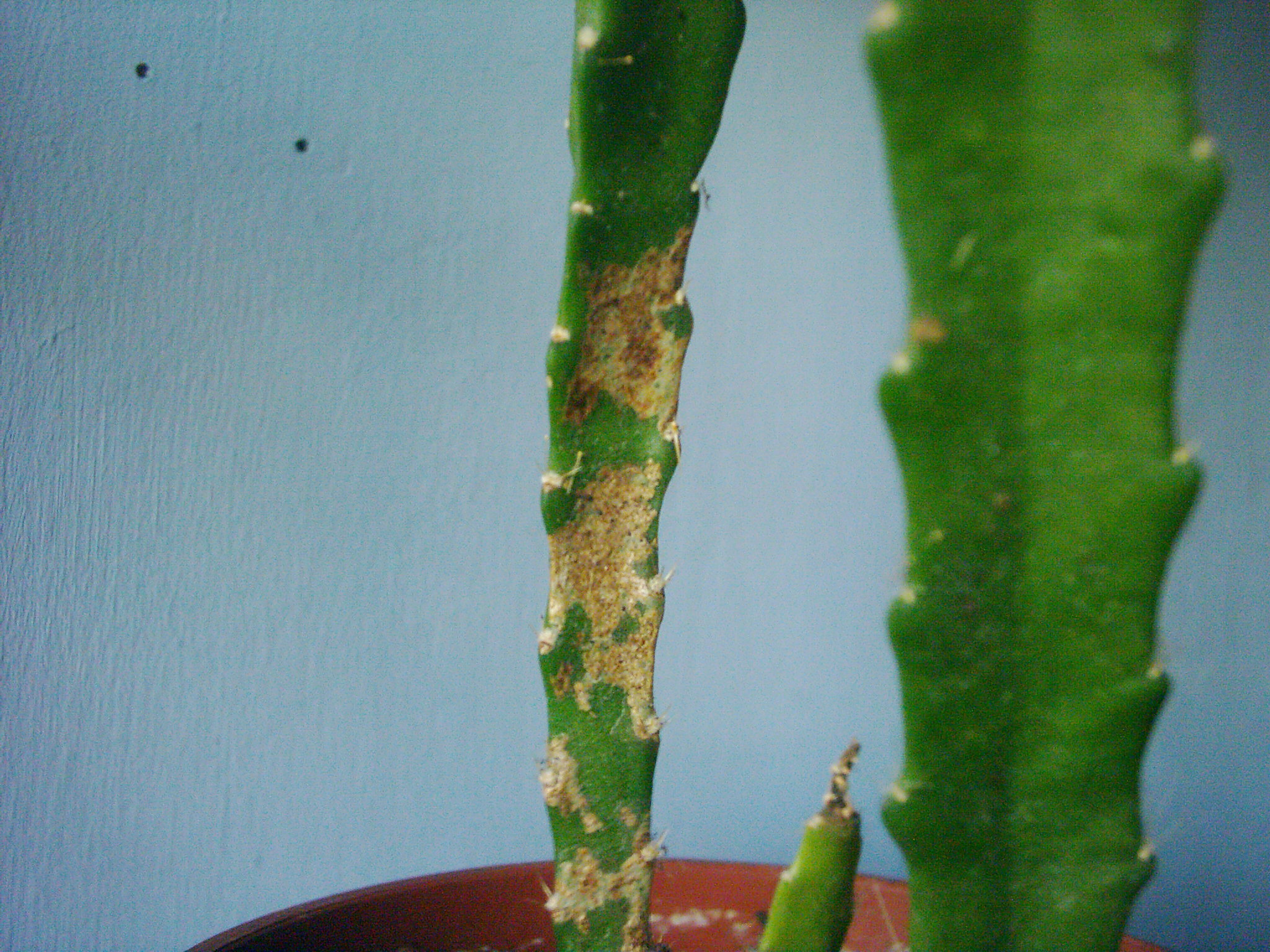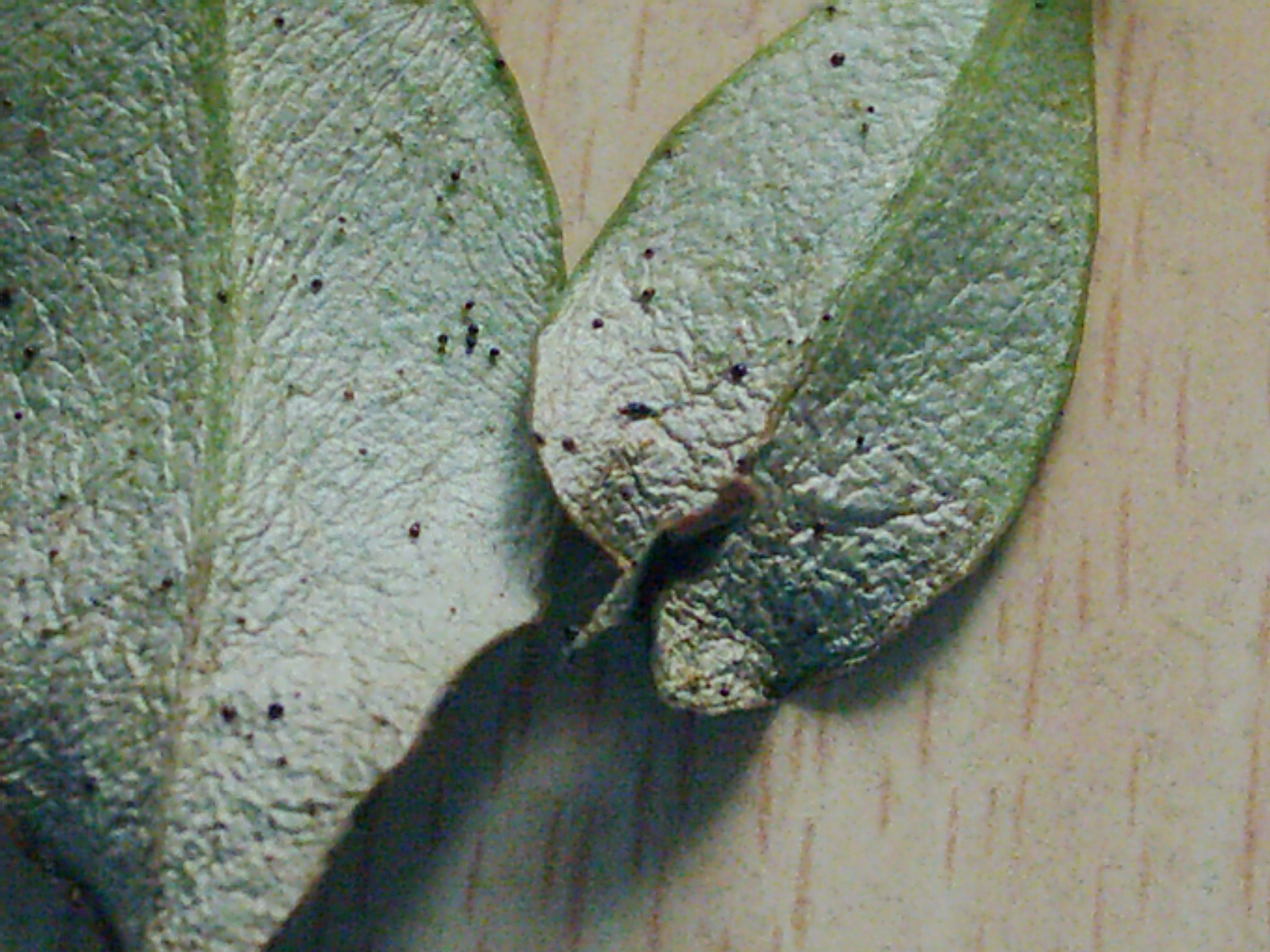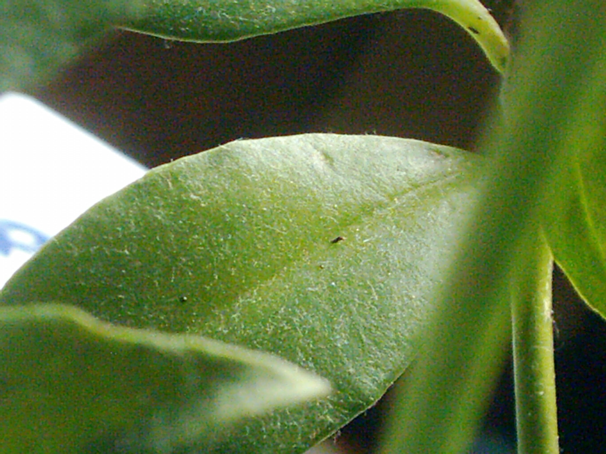 Dazu befinden sich auf und unter den Blättern glänzend schwarze Punkte, die ganz hart sind.
