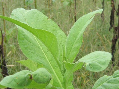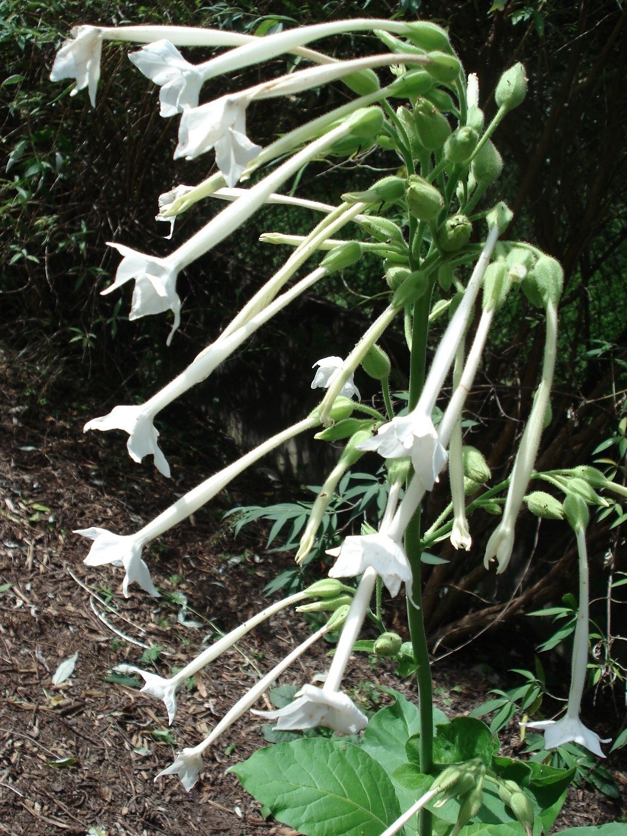 die pflanze ist bis zu 1,5m hoch, sie klebt total egal wo man sie anfasst und riecht sehr süß. sie hat große (bis zu 30cm) lange abgeruntete blätter die gerade vom ´stamm´ abstehen. und hat am oberen ende mehrere weiße trichterförmige blüten. die ca 5-8 cm lang sind. wo die blüten schon braun waren hab ich samen aus den verbliebenen offenen kapseln geschüttet. min 50-80 mini-mini-kügelchen.die braun sind.