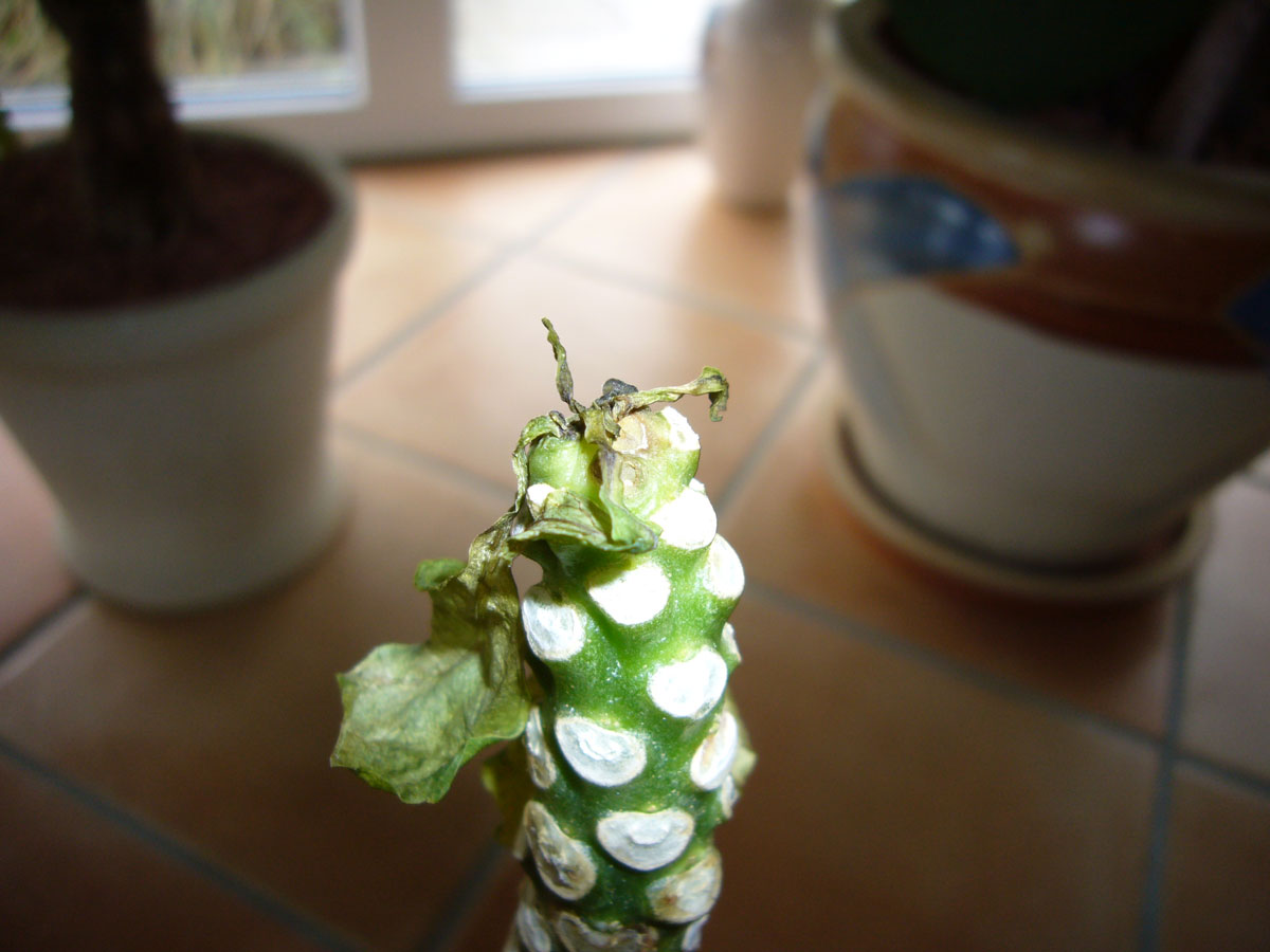 nachdem ich vor ca. 1 Woche die Pflanze mit "Anti-Spinnmildenspray" besprüht hatte, kommen zwar noch Blätter, die aber sofort verwelken. Sie werden kaum ein paar cm groß. Ob dies an den Besprühen liegt weiß ich nicht genau, vermute das aber schon.