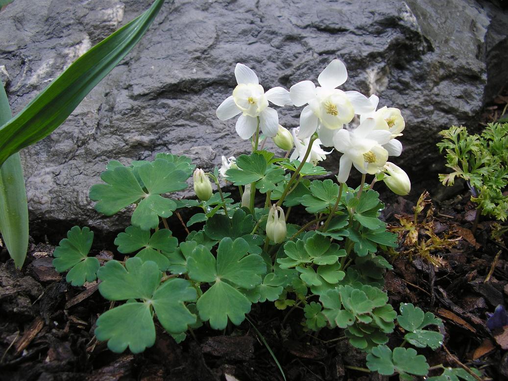 Die Fächerblatt- Akelei ist die beliebteste Zwergakelei, und sehr gut für den Steingarten geeignet. Sie blüht früher als viele andere Akelein und bringt daher oft schon Ende April den fröhlich, verspielten Akeleicharme in den Garten.