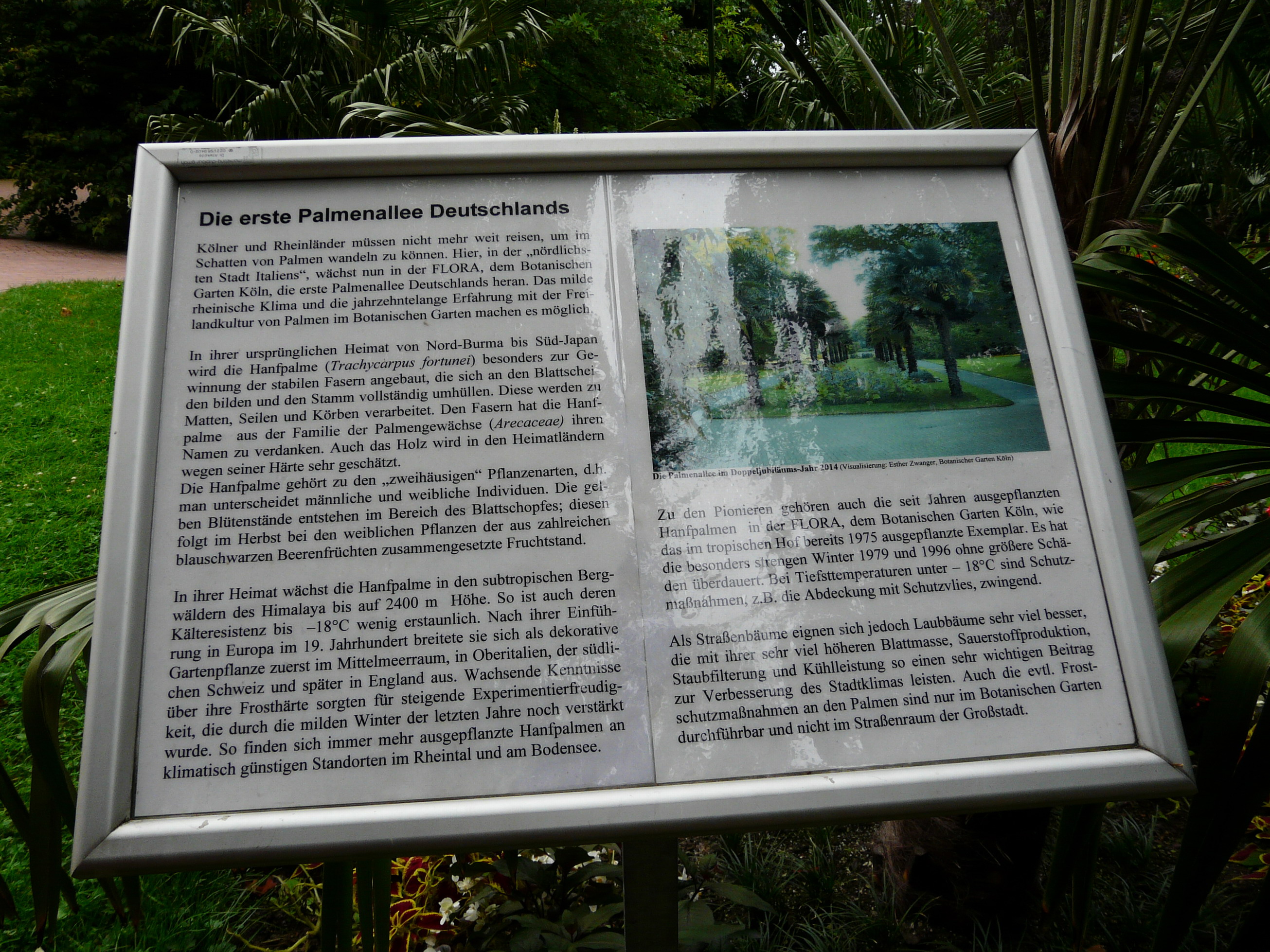 Die Auspflanzung der ersten Palme im Freiland des Botanischen Gartens liegt schon 33 Jahre zurück, und im geschützten Bereich des tropischen Innenhofes sind mehrere Chinesische Hanfpalmen mittlerweile zu stattlicher Größe herangewachsen.