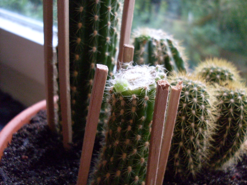 Ich hatte Erfolg mit meinem Kaktus. Er hat nun kleine Wurzeln, wenn auch mitunter nicht nur da, wo sie erwünscht waren, aber er hat welche. Auch hat das Kopf unf Fußlose Mittelstück plötzlich im Schrank stehen einen kleinen Triebentwickelt und das große Stück wuchs plötzlich im 1cm... komisch komisch... hmmm