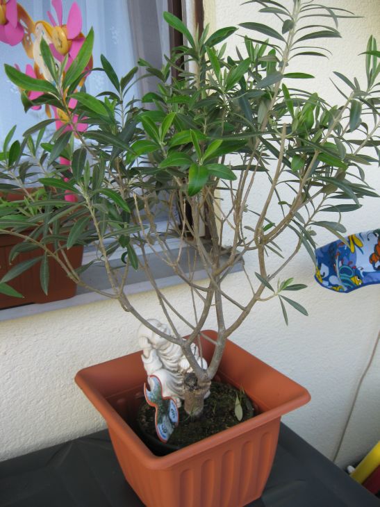 Nun im Winter hat sie dann viele Blätter gelassen, aber nun treibt sie super gut aus. Ein Zweig war so lang gewurden das ich ihn abgeschnitten habe (schweren Herzens). Hab den dann in die Erde gesteckt, dass ein neues Bäumchen vieleicht wachsen kann, doch der wurde ganz schnell welk, trotz das ich regelmäßig gegossen hab. Dafür wächst nun an der Seite ein Zweiglein heraus, welches die gleichen Blätter hat wie die Olive und blüht an der Spitze. Ist das jetzt eine Olive oder Unkraut?