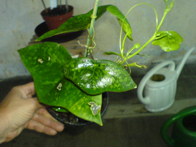 Während ich also durch das Gewächshaus streife und stöbere, was ich denn so nettes, neues für mich mitnehmen könnte, fällt mein Blick plötzlich auf einen Kübel, der in einer Ecke steht... darin befindet sich also ein Gewächs, dass ich, damals noch Laie, niemals nicht im Leben als eine Passis identifiziert hätte, zumindest nicht auf den ersten Blick. Schaut euch mal diese tollen Blätter an...(ich meine, am Ende des Beitrags)