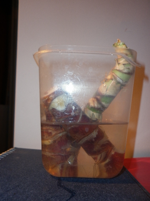 drei Stämme die es gegeben hat, in ein Glas bzw. Tupperware mit Wasser gesetzt.