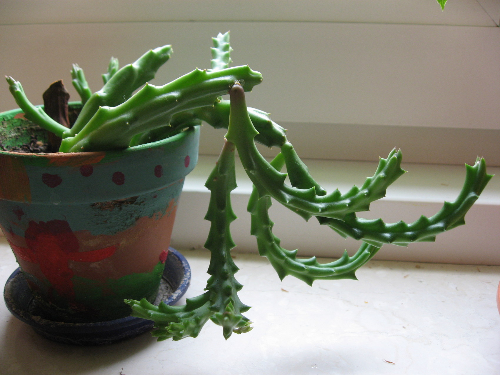 Ja, sie wollte mir unbedingt auch was mitgeben und hat dann halt von dieser Pflanze, von der sie meinte, die sei so außergewöhnlich (ich kannte sie ja auch nicht), 2 Stecklinge für mich abgemacht. Witzigerweise wusste sie auch nicht, was für Pflanzen sie da hat (sie hat noch eine zweite Art), sie meinte nur, sie nennt sie immer ihre "Katzenpflanzen", weil die Blüten so puschelig sind. Und ihre Bekannten würden immer sagen, es wären Stinkpflanzen Zusammen mit dem Anblick der Blüte der zweiten Art reimte ich mir dann so ungefähr zusammen, was es wohl sein könnte. Ich fürchte, ich habe nicht so ganz den idealen Standort, ob sie wohl dann mal blüht, weiß ich nicht... Aber ich freue mich trotzdem, dass sie immerhin angewachsen ist, mal sehen, wie es mit ihr weitergeht!