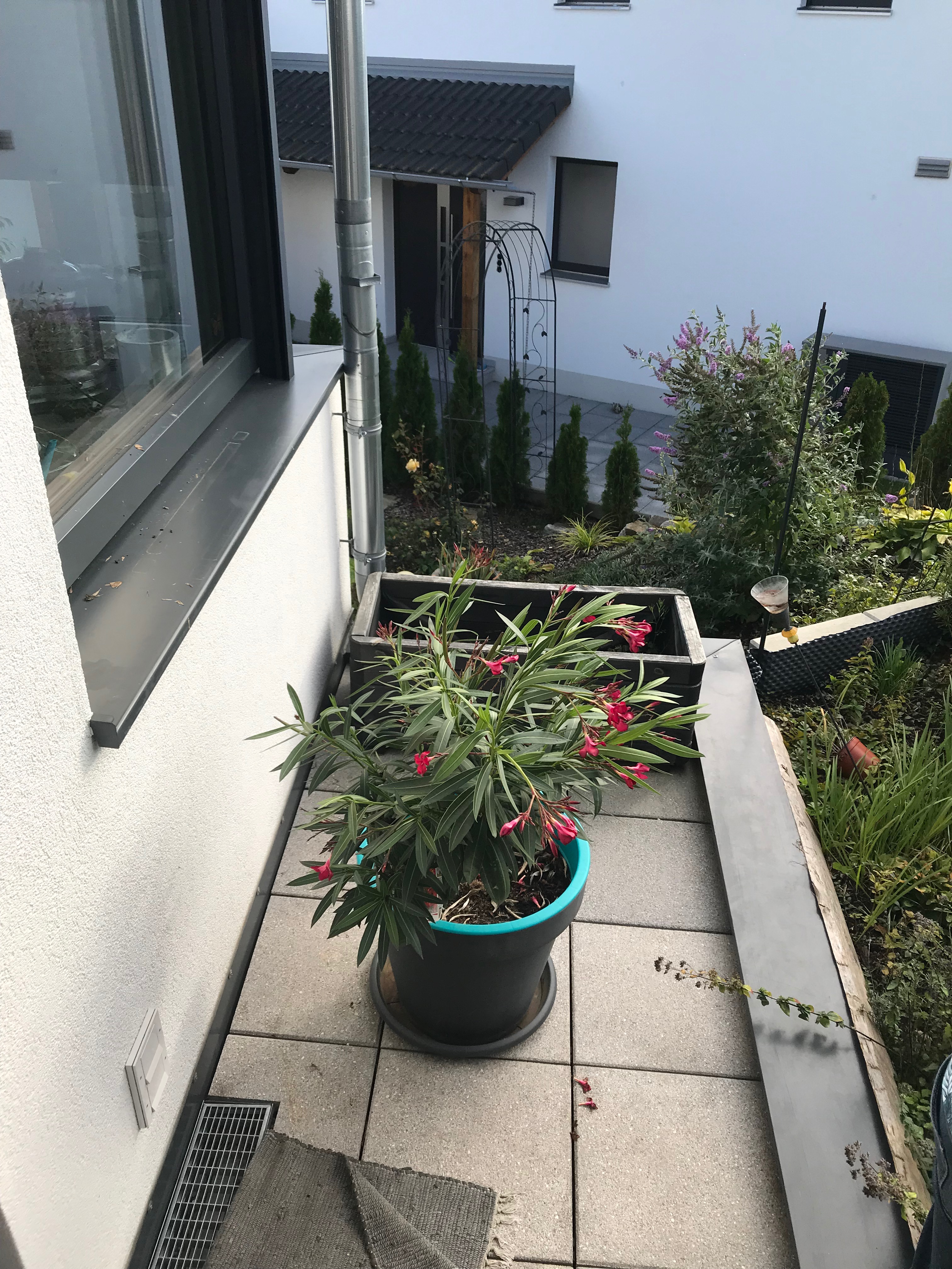 Diese Terrasse geht Richtung Süden raus, ist einigermaßen Wind geschützt und es kommt Regen an den Baum. Einziger Nachteil, ab Nachmittag würde der Baum knalle Sonne abbekommen. Was soll ich also tun?!