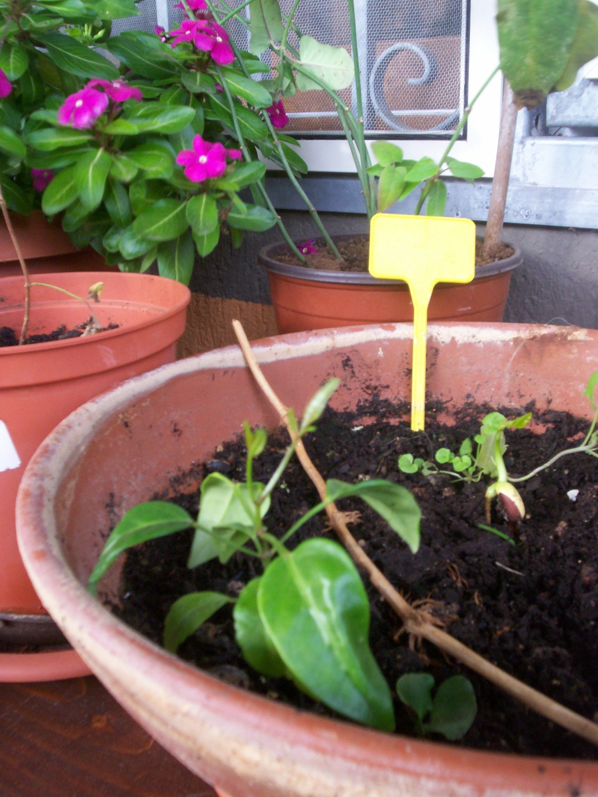 Ich setze Samen, beschrifte auch ganz brav, stelle den Brutkasten in die Sonne und warte. Dann passiert nix. Nicht nach 2, nicht nach 4, nicht nach 6 usw. Wochen. Irgendwann geb' ich's auf, besprühe nicht mehr, und verwende den Brutkasten für anderes....vergesse natürlich, was ich vor Moooonaten da mal gesät habe , die gelben Plastikkennungen sind natürlich auch längst anderweitig im Einsatz....UND SIEHE DAAAAAA