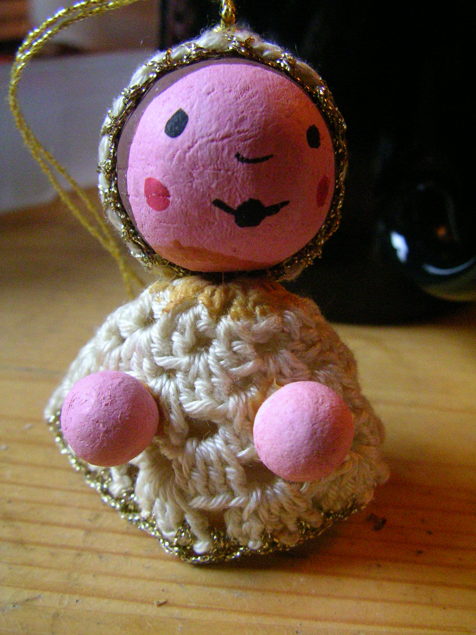 Und als wir dann fertig waren und der Adventskranz auf dem Tisch stand, hat sich ein niedlicher blinder Passagier, der aussah, als hätte er auch schon die Weihnachtsdeko angelegt, aus dem Staub machen wollen. Den könnt ihr im Makro-Thread sehen.