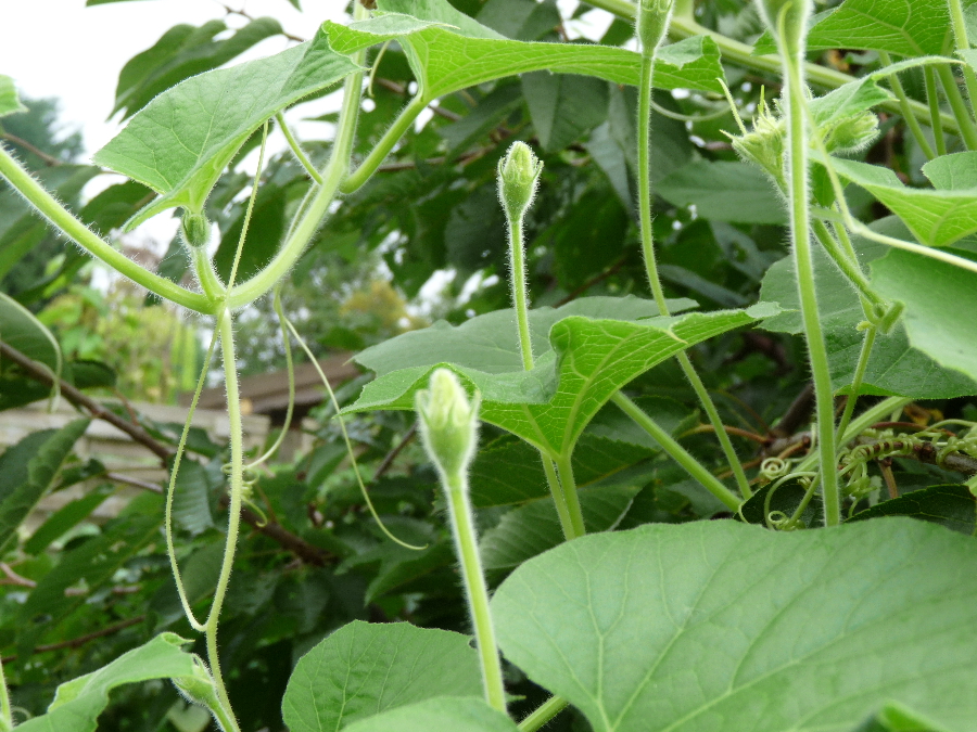 1. Muss man die Pflanze senkrecht ranken lassen, oder kann man sie auch wie beim "normalen" Kürbis auf dem Boden entlang kriechen lassen?