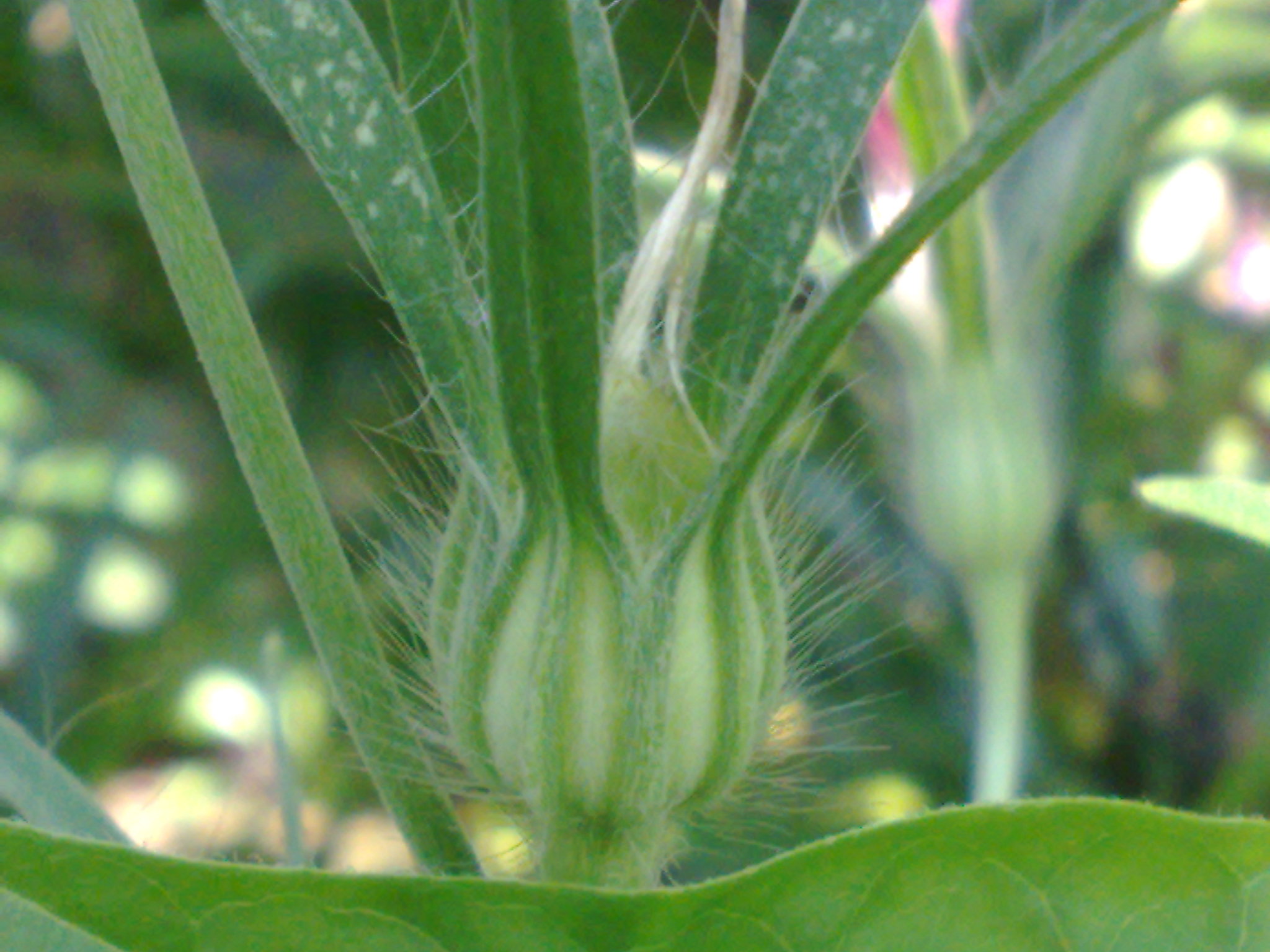 Blüten : glockenförmig mit 5 Kelchblättern, die Blüten sind ca. 4 cm und sind von rosa- purpurner Färbung mit dunklen Adern und